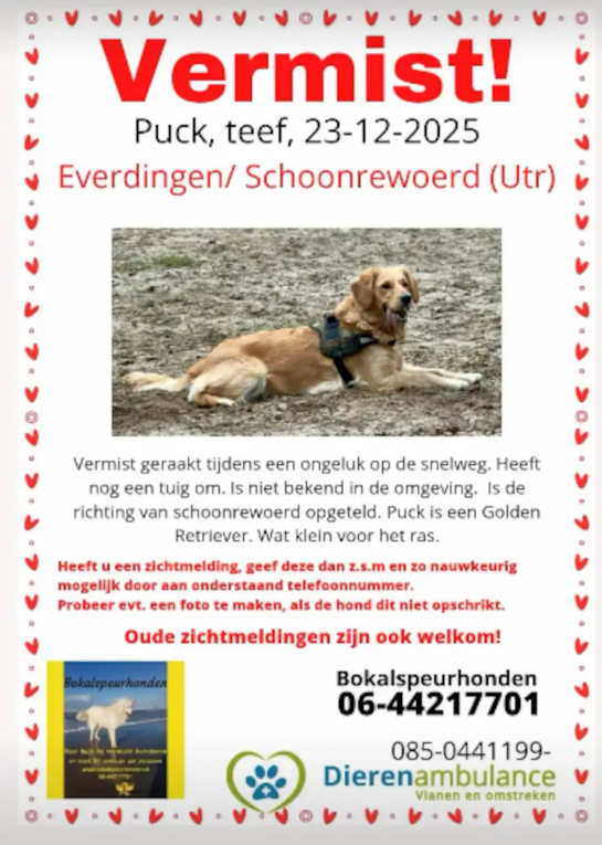 Voor de omgeving en het publiek is het vooral het menselijke aspect dat blijft hangen: een ernstig ongeval, een onzekere afloop en de hoop dat hond Puck alsnog levend wordt teruggevonden. De politie roept mensen die iets hebben gezien rondom het tijdstip van het ongeval of die informatie hebben over de vermiste hond op zich te melden, zodat zowel het onderzoek als de zoektocht verder kan worden geholpen.