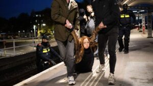 Een woordvoerder van de politie noemde de actie “levensgevaarlijk”. “Het spoor is geen plek om te demonstreren,” aldus de politie. “Dat brengt niet alleen de activisten, maar ook reizigers en treinpersoneel in gevaar.”