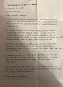 Op het Lentiz | LIFE College in Schiedam is grote verontwaardiging ontstaan over een schoolopdracht die tijdens een les Nederlands werd uitgedeeld. Leerlingen kregen een fictieve sollicitatiebrief mee die vol stond met racistische stereotypen en opvallend slordige taal. De opdracht leidde tot meerdere klachten van ouders en is inmiddels onderwerp van intern onderzoek.