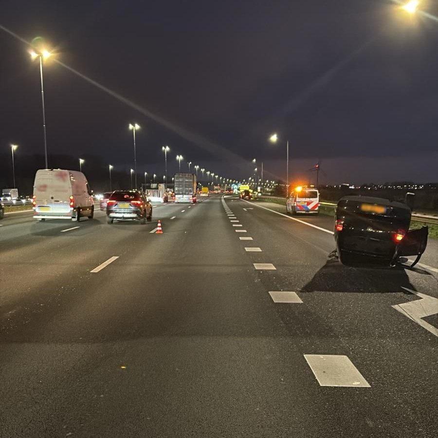 Het ongeluk gebeurde aan het begin van de ochtendspits, toen het verkeer al drukker begon te worden. Volgens weginspecteurs is de auto vermoedelijk door nog onbekende oorzaak over de kop geslagen. Het voertuig kwam ondersteboven tot stilstand op de rijbaan, waardoor meerdere rijstroken moesten worden afgesloten voor hulpdiensten en bergingsvoertuigen.