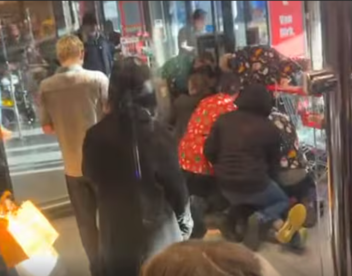 Op de videobeelden is te zien dat de man liggend op de grond in bedwang wordt gehouden. Eén van de medewerkers deelt meerdere vuistslagen uit, terwijl ook schoppen richting het hoofd zichtbaar zijn of worden geprobeerd. Omstanders grijpen nauwelijks in, al is op de achtergrond iemand te horen die roept: „Hé, jullie zijn met zijn twintigen.” Kort daarna stopt het filmpje.