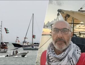 In een verklaring zegt de bemanning dat vijf van de zeven opvarenden in hongerstaking zijn gegaan. “We weigeren eten van een entiteit die de Palestijnen uithongert met een illegale blokkade, die wij probeerden te doorbreken,” luidt hun boodschap.