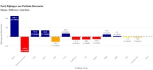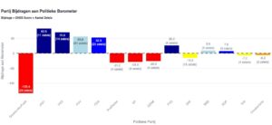 JA21 en CDA vertonen een lichte stijging — een indicatie dat sommige kiezers zich meer op partijen richten die traditioneel rechts of centrum-rechts liggen, maar met meer behoud van institutionele structuur.