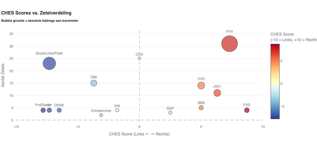 De CHES-analyse is gebaseerd op veronderstellingen over coalities en transformaties van zetelverdeling, niet gegarandeerd.
