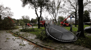STADSKANAAL – Storm Amy heeft zaterdagmiddag in korte tijd flink huisgehouden in het noorden van het land. Vooral in Stadskanaal is de schade groot: tientallen bomen zijn omgewaaid en meerdere woningen raakten beschadigd. Ook elders in Nederland zorgden harde windstoten en hoogwater voor overlast.