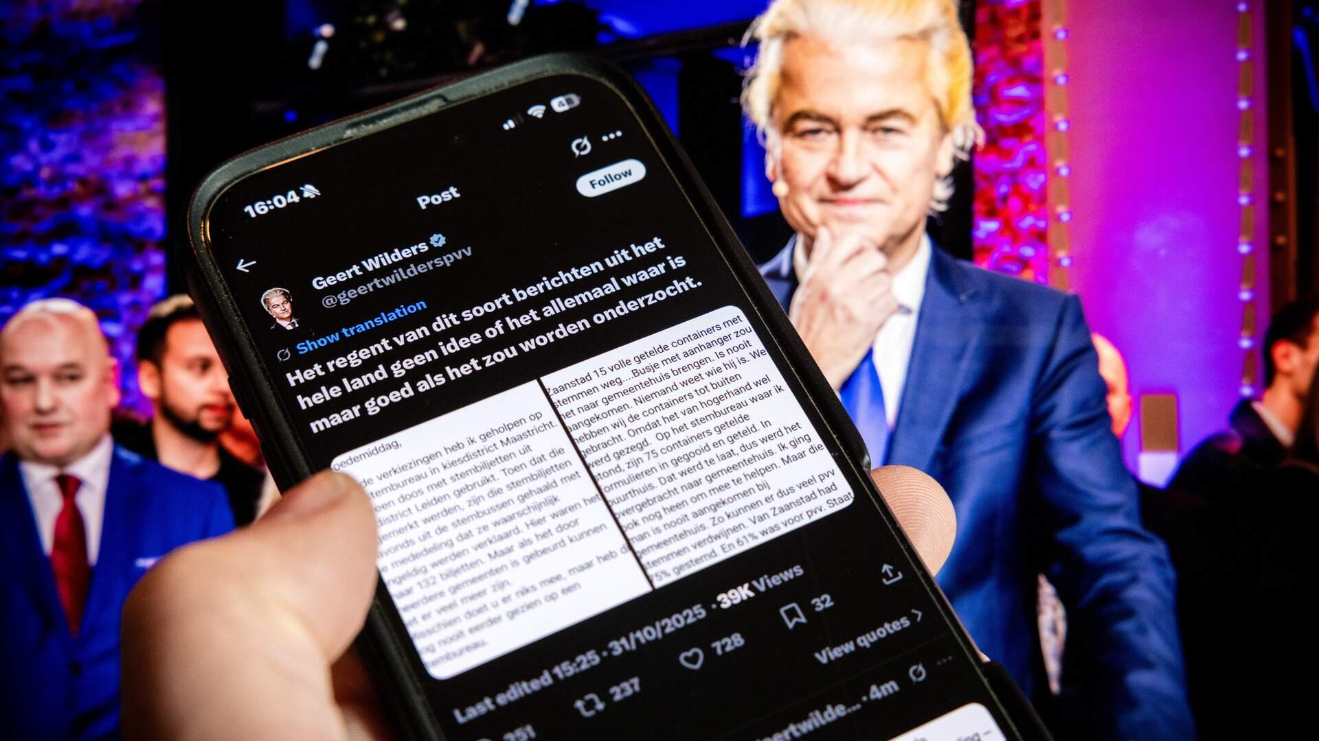 Wilders plaatste vrijdag twee berichten op X waarin hij suggereert dat er gesjoemeld zou zijn met stemmen bij de verkiezingen. De herkomst van de berichten is onduidelijk en de PVV-leider levert geen bewijs voor daadwerkelijke fraude.