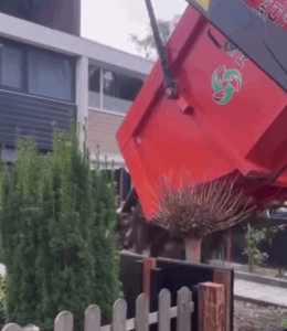 Buurtbewoners spreken van een surrealistisch tafereel. “We hoorden eerst het luchtremgeluid en dachten: levering van materialen,” vertelt een overbuurman. “Maar toen kantelde die bak en kwam er gewoon een berg puin uit. Ik heb dit nog nooit gezien. Iedereen stond met zijn telefoon te filmen.”