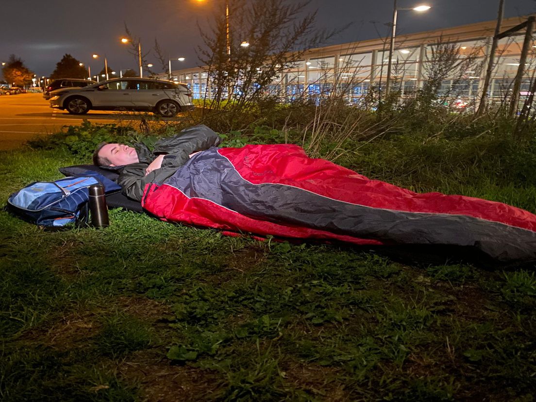 Behalve een kat die midden in de nacht bovenop hem sprong en een vleermuis die overvloog, bleef de nacht verder rustig. “Gelukkig ben ik niet lastiggevallen, maar het is een vreemd gevoel om nergens echt veilig te zijn.”