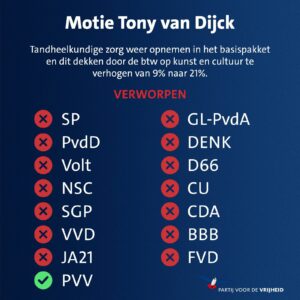 Voor de PVV is het stemmen tegen opnieuw een bewijs dat de gevestigde partijen volgens hen de verkeerde prioriteiten stellen. “Nederlanders betalen zich blauw aan de kassa, maar de Kamer vindt ontwikkelingshulp belangrijker,” sneerde Wilders.