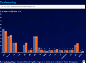 Uit de nieuwste peiling van EenVandaag blijkt dat de PVV enkele zetels verliest ten opzichte van eerdere weken. Hoewel de partij nog steeds de grootste blijft in een aantal scenario’s, lijkt de voorsprong kleiner te worden.
